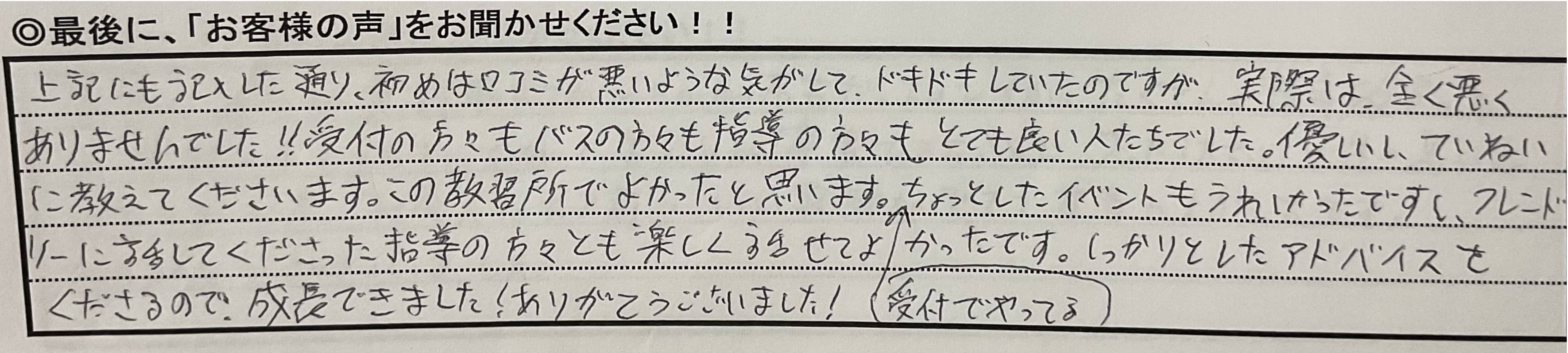 実際に通った卒業生の直筆アンケートを通して、リアルな体験と満足の声をお届けします。